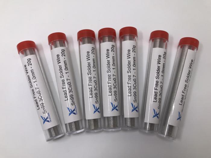 Lead Free Solder Wire Sn99.3Cu0.7 doesn't contain lead and it's alloy of Tin & Copper respectively at 99.3% & 0.7% by weight. The standard XF Solder wire Sn99.3Cu0.7 is furnished with a rosin flux core 2.0%. This alloy is the most economic and commonly used lead free type among the several major alloys (Sn96.5Ag3.0Cu0.7 & Sn99Ag0.3Cu0.7). We produce this solder wire at many different wire diameter ranging from 0.6mm to 3.0mm. It's made into solder tube with small volume at 10g, 15, 20g per tube as per client's request.